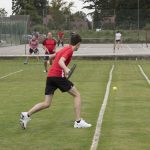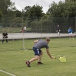 The Mansfield Tournament was contested in overcast conditions with the grass courts providing a low, and sometimes challenging, bounce.  Twenty-eight players competed over 6 rounds of 8 games in a friendly and enjoyable atmosphere.  John Gazeley from Retford Tennis Club triumphed with a clear lead of 4 points to take the men’s cup whilst Judy Brennan just pipped Jane Horner (both from Gainsborough Tennis Club) to win the ladies event.